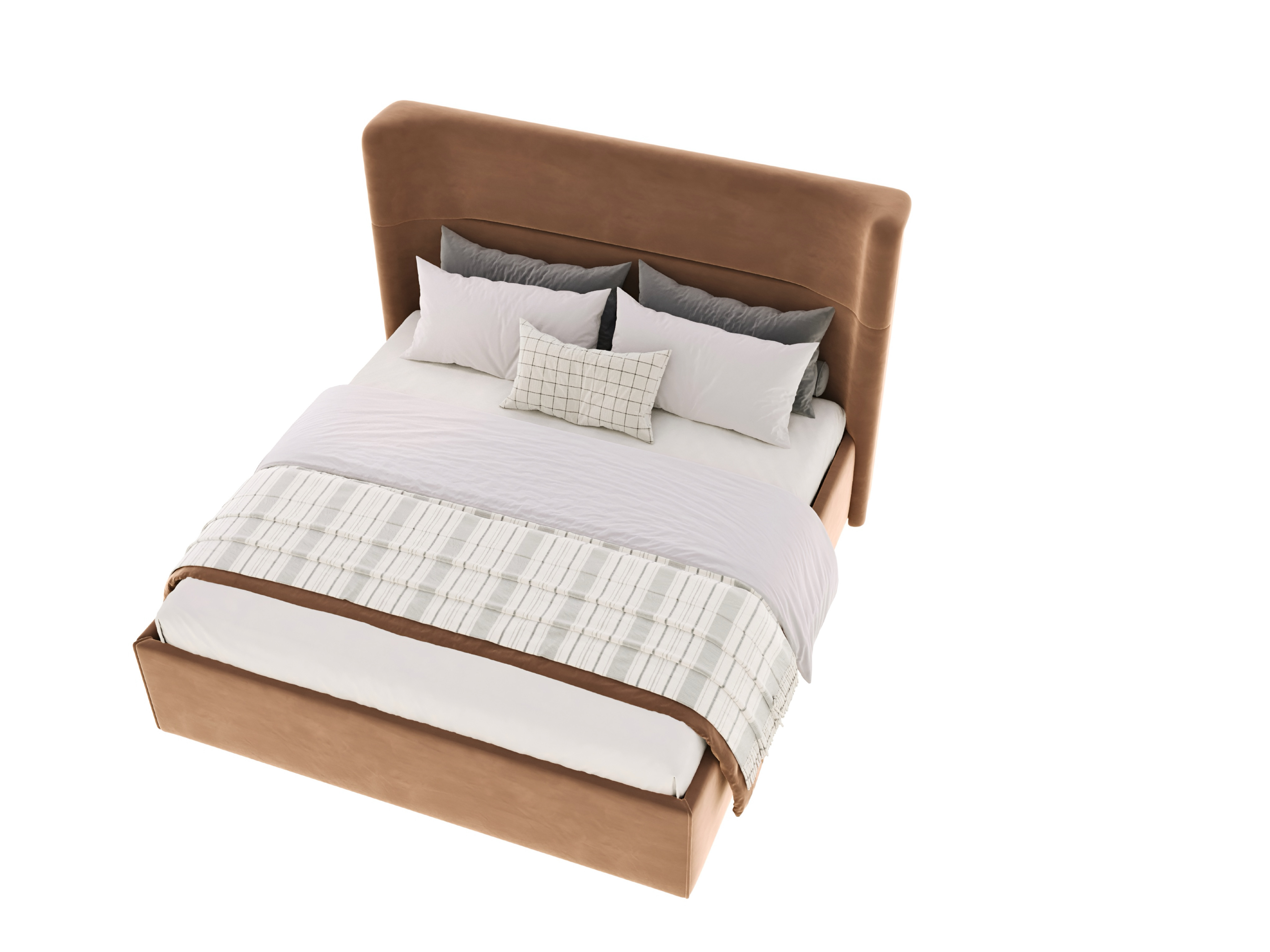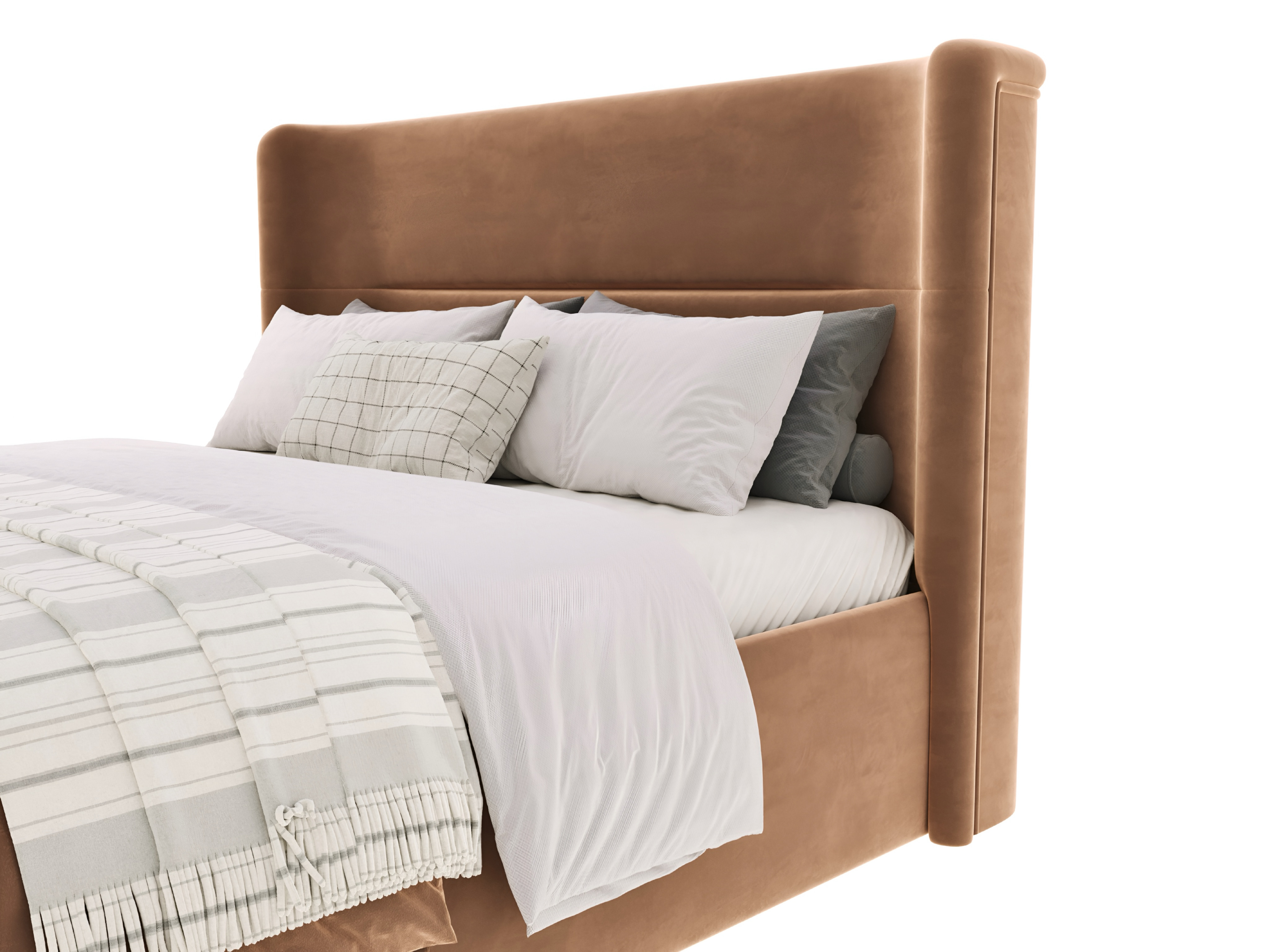 Высокое мягкое изголовье с изящной вертикальной стежкой не только украшает кровать, но и создает комфортную опору для отдыха или вечернего чтения. Практичный велюр терракотового оттенка отличается мягкостью, износостойкостью и благородной текстурой, сохраняя безупречный вид на долгие годы.